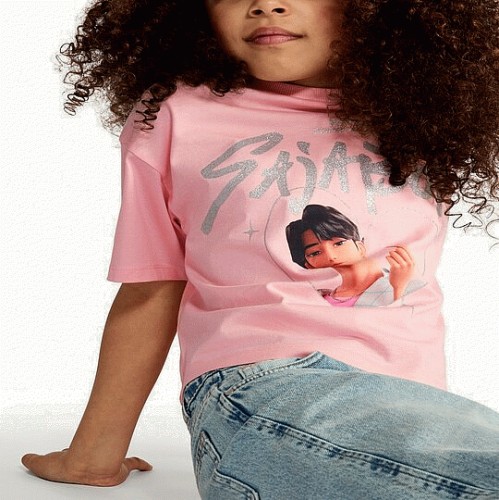 K-Pop Demon Hunters Print Pure Cotton T-Shirt in Pink