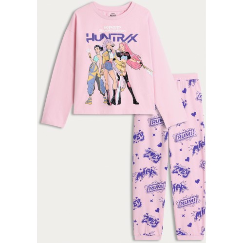 K-Pop Demon Hunters Print Pure Cotton Pyjama Set in Pink