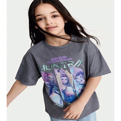 K-Pop Demon Hunters Pure Cotton Huntrix T-Shirt in Grey