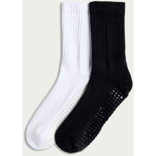 Active 2-Pack Cotton Rich Ribbed Gripper Socks in Black
