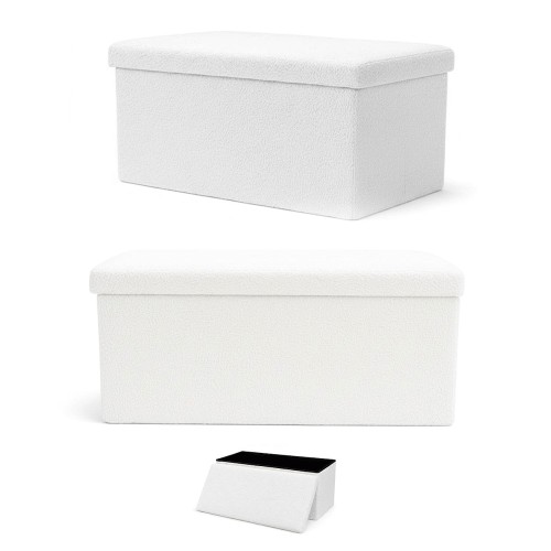 Folding Teddy Storage Ottoman White