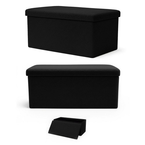 Folding Teddy Storage Ottoman Black