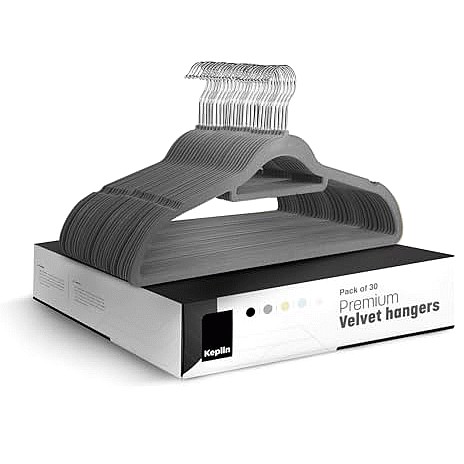 Velvet Hangers Non-Slip Clothes Hangers with Tie Bar & 360 Hook Durable & Sturdy Space-Saving Wardrobe Organisers for Suits Jackets & Clothes- Home Storage Solution (Grey)