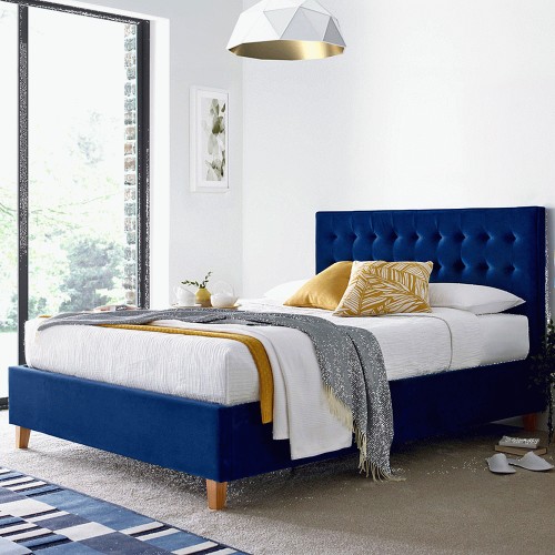 Kingham King Size Blue Velvet Ottoman Bed