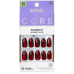 Manicure False Square Gloss Nails with Glue Red & Pink