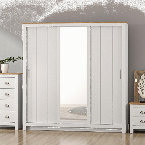 3 Door White Sliding Wardrobe with Mirror