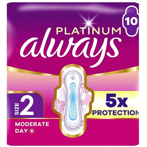 Platinum Sanitary Towels Moderate Flow Day (Size 2) Wings 10 Pads