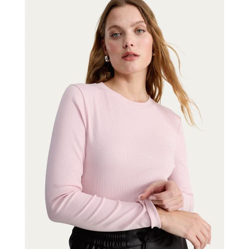Cotton Rich Crew Neck Long Sleeved Top in Pink