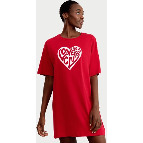Pure Cotton Lovers Club Heart Print Nightdress in Multi Red