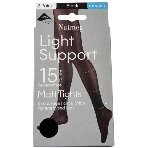 2-Pack 15 Denier Opaque Medium Support Tights in Black