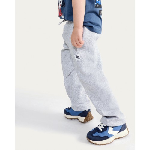 F&F Boys Cotton Rich NYC Patch Wide Leg Joggers in Grey Marl