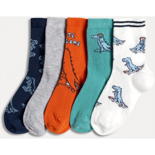 Boys 5-Pack Dinosaur Print Ankle Socks in Multi