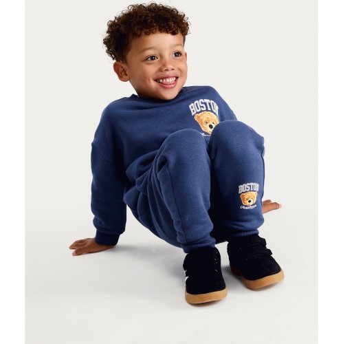 F&F Boys 2-Piece Cotton Rich Boston Bear Sweatshirt and Joggers Set in Navy