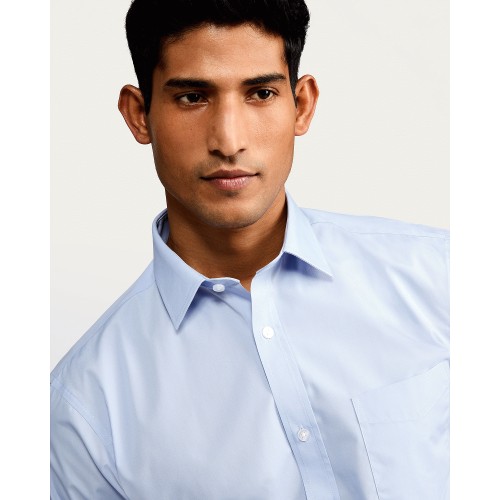 Regular Fit Easy Iron Single Cuff Long Sleeve Smart Shirt in Blue