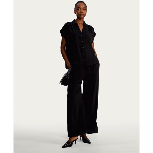 Wool Blend Super Wide Leg Pleated Trousers in Black