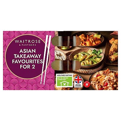 Selection includes chicken in sweet and sour sauce, beef in black bean sauce, battered chicken in sweet chilli sauce, egg fried rice, vegetable chow mein, and vegetable spring rolls