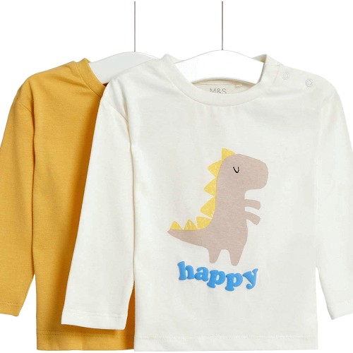 Cotton Dino Graphic Long Sleeve Tops 2-3Y Multi