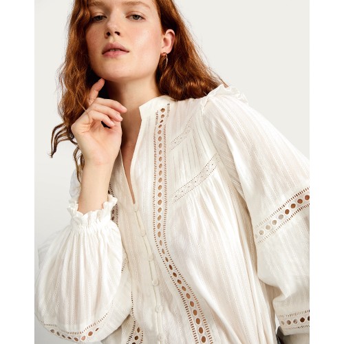 Pure Cotton Frill Sleeve Button Up Blouse in White