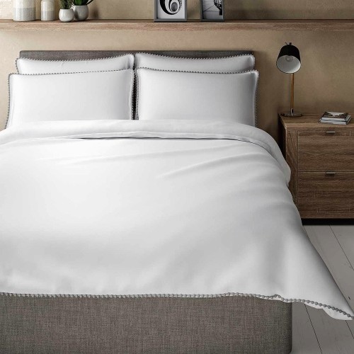 Cotton Rich King Size Pom-Pom Trim Bedding Set Grey Mix