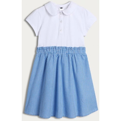 F&F School Girls Cotton Rich 2 in 1 Gingham Polo Dress in Blue