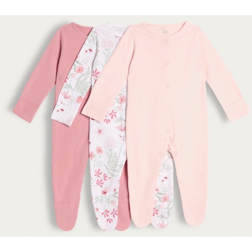 3-Pack Pure Cotton Floral Sleepsuits in Pink