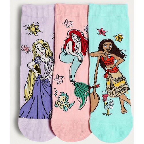 Disney Princess 3-Pack Cotton Rich Ankle Socks in Multi
