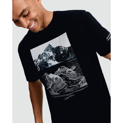 9 Peaks Mountain Print Pure Cotton T-Shirt in Black