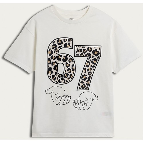 F&F Girls Pure Cotton Leopard Print 6 7 T-Shirt in White