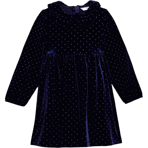M&S Glitter Spot Velvet Dress 5-6 Years Navy