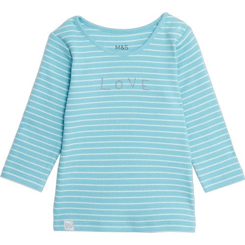 M&S Love Stripe Long Sleeve Tee 3-6 Months Turquoise Mix