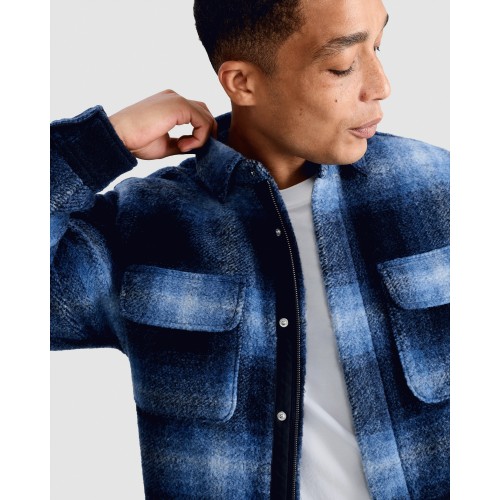 Brushed Checked Overshirt in Navy