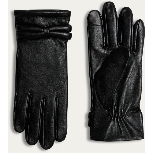 Leather Bow Detail Gloves in Black