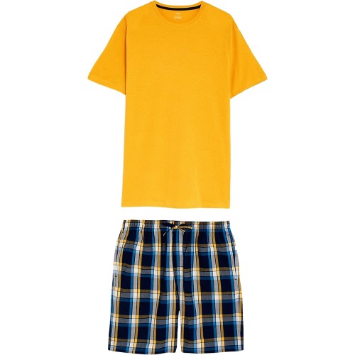 M&S Mens Pure Cotton Checked Pyjama Set L Yellow Mix