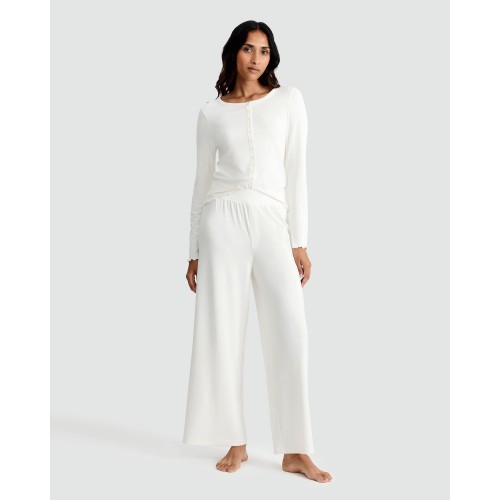 Rise by Zara McDermott Modal Rich Wide Leg Pyjama Bottoms in Cream