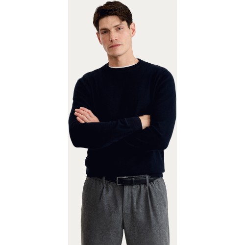 Pure Cotton Ribbed Crew Neck Jumper in Navy