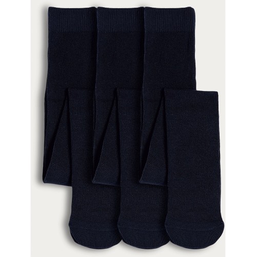School Girls 3-Pack Cotton Rich Tights in Navy