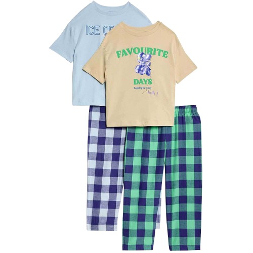 Boys Pure Cotton Checked Pyjama Set 4-5 Years Blue