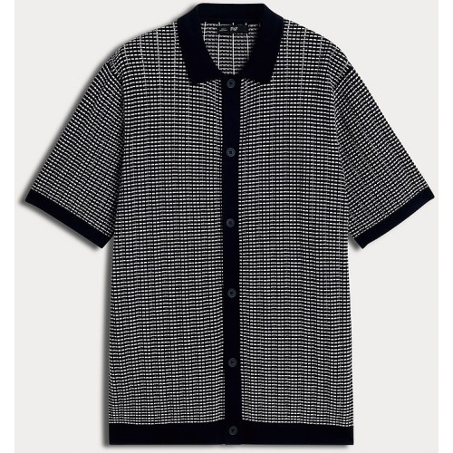 Pure Cotton Jacquard Button Up Polo Shirt in Multi Blue
