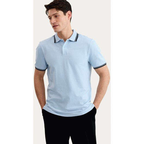 Cotton Rich Tipped Short Sleeved Polo Shirt in Blue