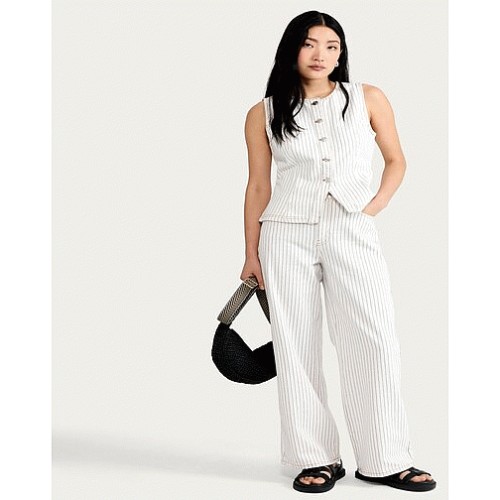 High Rise Striped Wide Leg Jeans in White