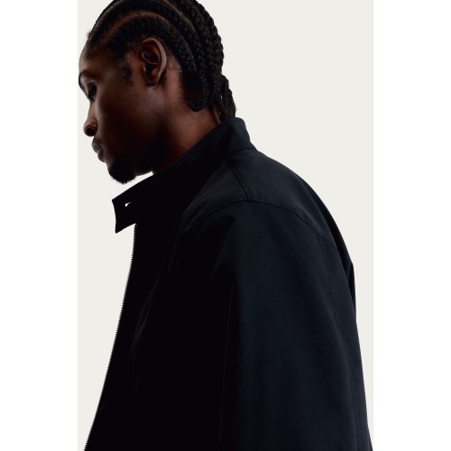 Funnel Neck Zip Up Harrington Jacket in Black