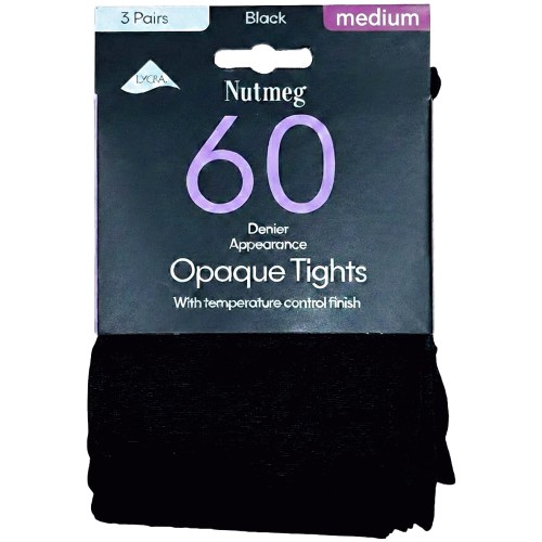 Womens 60 Denier Black Opaque Tights Size Medium 12-14