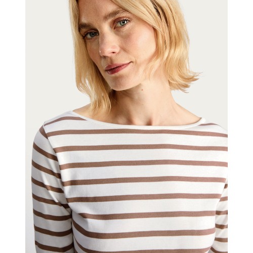 Pure Cotton Striped Boat Neck Top in Multi Brown