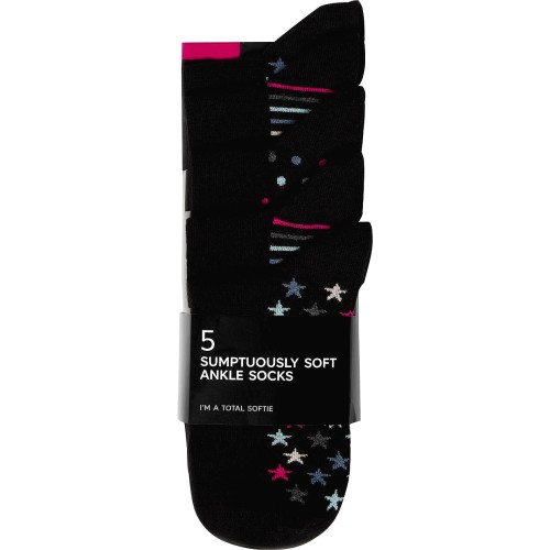 Womens Sumptuously Soft Ankle Socks Size 6-8 Black Mix