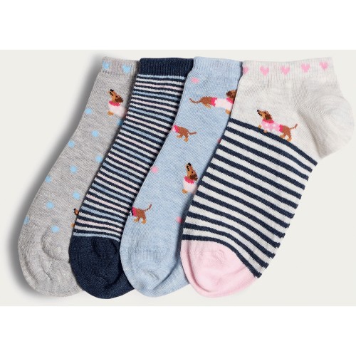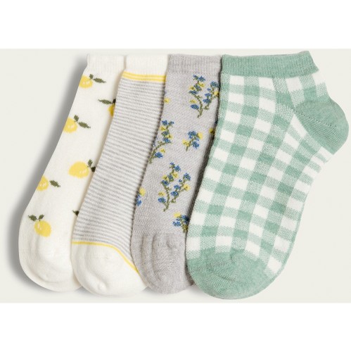 4-Pack Floral Stripe Gingham Trainer Socks in Multi Yellow