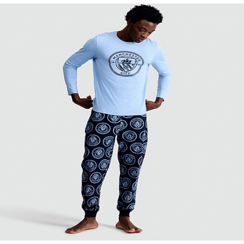Manchester City 2-Piece Top and Fleece Bottoms Pyjamas Set in Blue