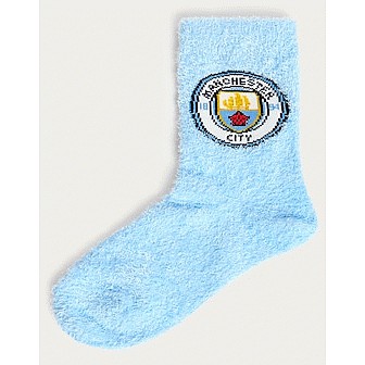 Manchester City Football Club Print Minky Fleece Pyjamas in Blue