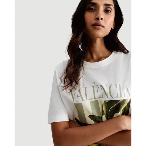 Pure Cotton Olive Graphic T-Shirt in Cream