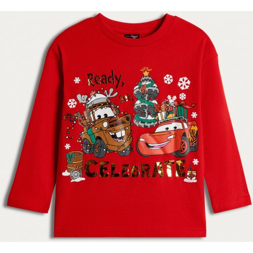 Disney Cars Pure Cotton Ready Set Celebrate Long Sleeved Top in Red
