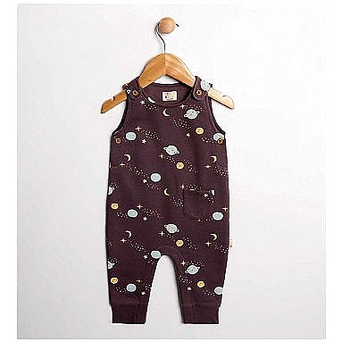 Soft brushed back dungaree paired with interlock ditsy bodysuit